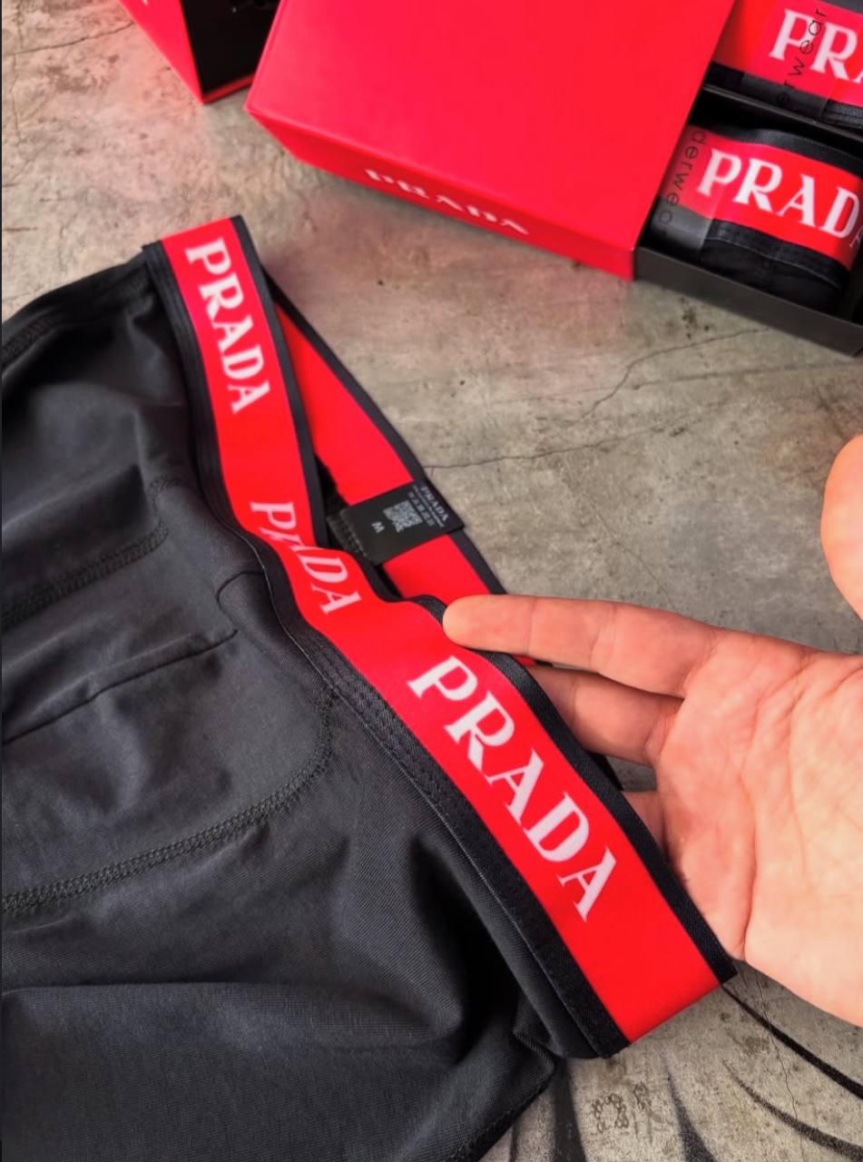 پک ۳ عددی شرت مردانه Prada با کش قرمز، ترکیبی از راحتی، کیفیت بالا و طراحی خاص. پارچه نخ پنبهای لطیف، کمرکِش نرم با لوگوی برند، و دوخت بادوام – یه انتخاب شیک و کاربردی برای آقایون خوشسلیقه